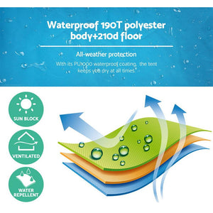 More importantly, this lightweight Tent comes with separate sections for showering and toilet use with proper drainage holes and adequate ventilation for comfort. Perfect for camping, road trips or even outdoor events like market days or sport meets, the Weisshorn Pop-up Tent is a must to ensure a pleasant experience for everyone.