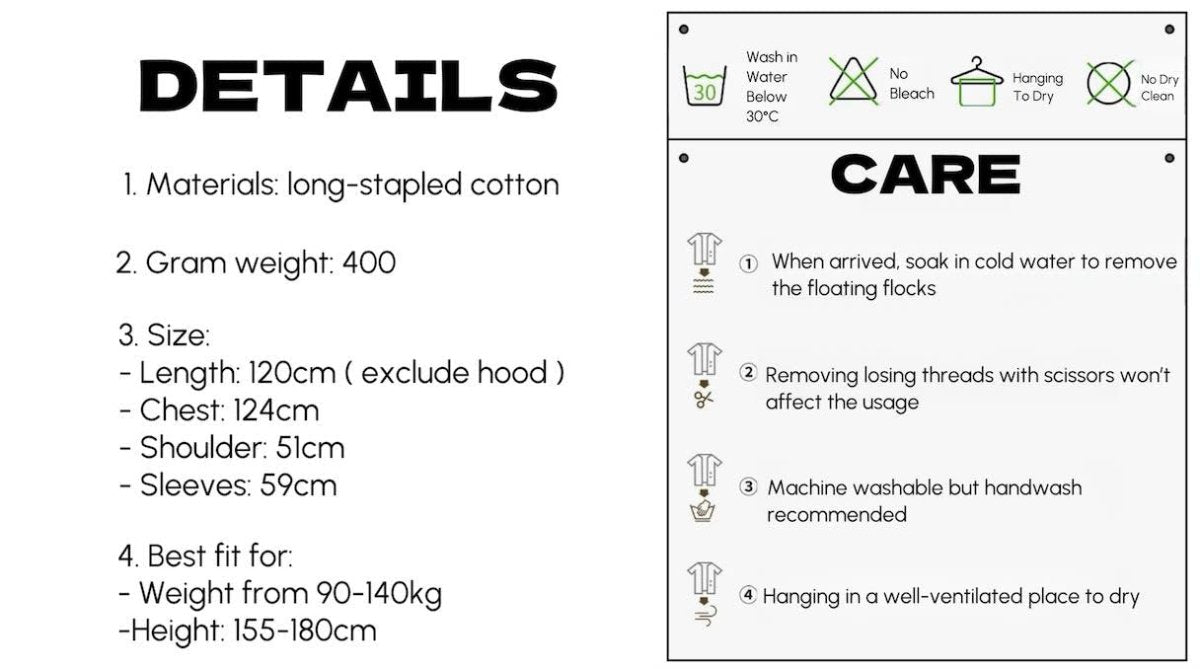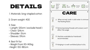 Constructed with a luxurious gram weight of 400g 100% long-stapled, these playful robes are incredibly soft and amazingly skin-friendly, allowing you to slide into a spa-like comfort after bath and give every inch of your skin a gentle kiss.